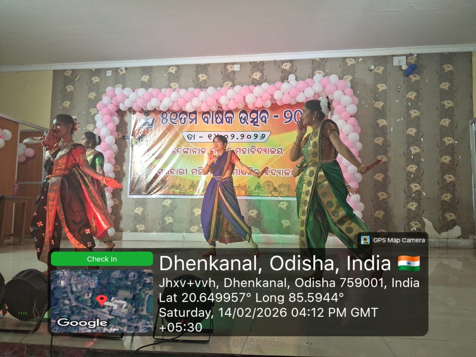 Dhenkanal Mahila Mahavidyalaya, Dhenkanal and Govt. Women’s HSS Dhenkanal celebrated its 51st Annual Day on 14th of February 2026 in the college premises. Dr Arpita Sabath, prominent academician, administrator and visionary Ex Principal was invited as the chief guest. Khurshida Begum, alumni of this college and recipient of president award was invited as the guest of honor. Dr. Sakuntala Jena, Principal presided over the meeting. Miss. Leena Gantayat, President, Dramatic Society delivered welcome speech. The guest introduction was presented by Dr. Sarojini Das, vote of thanks was presented by Dr. Truptimayee Sahoo. R Shibali Priyadarshini and Krishna Sahoo presented and coordinated the meeting. Students were awarded prizes for week long competitions organized by cultural and dramatic society. The Students securing highest marks in Degree and Council examinations were also felicitated. Sunita Mishra, a student of +3 Science shared her experience. The annual report was presented as documentary. The meeting was followed by various cultural programme presented by students.